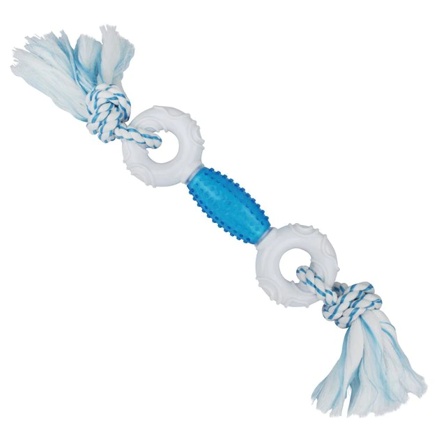 - Features thermoplastic rubber (TPR) for added strength and knotted rope for a fun game of tug-o-war.