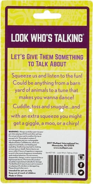 Turn up the playtime fun for your furry pal with the Multipet Look Who’s Talking Chick Plush Dog Toy. This plush toy is music to your pup’s ears—literally—because it has a built-in voice box that actually makes noises whenever it’s squeezed. Great for dogs of all ages, it’s perfect for playing fetch since you can toss it easily, and also makes a soft cuddle buddy that’s always ready for nap time. So bring on all the chasing, chewing and fetching action—good thing it’s built with durable stitching for added strength.