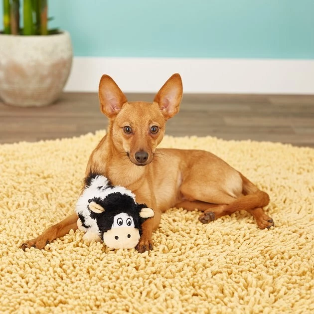 - Plush toy moos when it’s squeezed to make playtime more exciting for your dog.