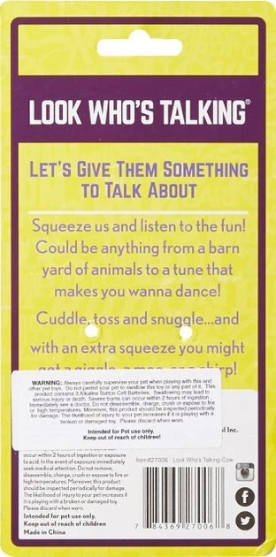 Round up some playtime fun with the Multipet Look Who’s Talking Cow Plush Dog Toy. This plush toy—literally music to your pup’s ears—has a built-in voice box that actually moos whenever it’s squeezed! Easily tossed, it’s great for playing fetch, and makes a soft cuddle buddy that’s perfect for nap time. Constructed with reinforced stitching and no plastic parts, this toy is made to be loved.
