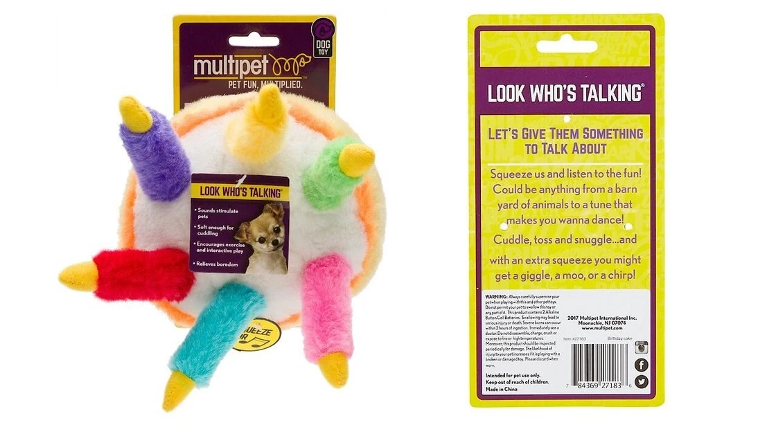 - Soft plush toy plays the “Happy Birthday” song every time your furry friend gives it a squeeze.