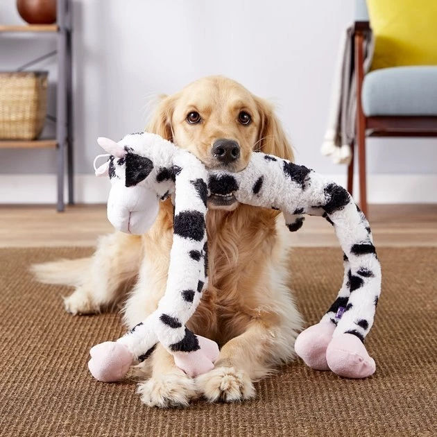 Your pal will be over the moo-n when he gets his paws on Multipet’s Swingin’ Slevin Oversized Cow Toy! This plush cow has multiple squeakers inside to excite and entice your pup. The super long limbs make this cow not only soft and cuddly for naptime, but also floppy and fun for an exciting game of toss and fetch! At 27-inches long, Multipet’s oversized cow plush is especially great for larger dogs. And for an added bonus, all of Multipet’s Swingin’ Toys can be washed for an easy and hassle-free clean.