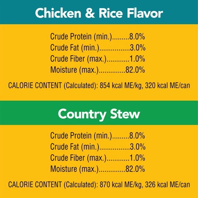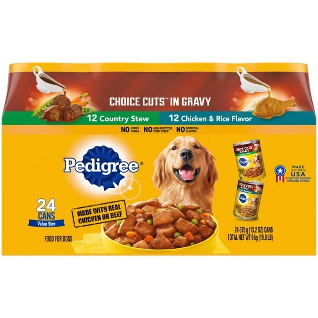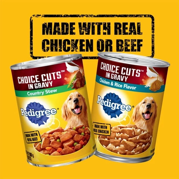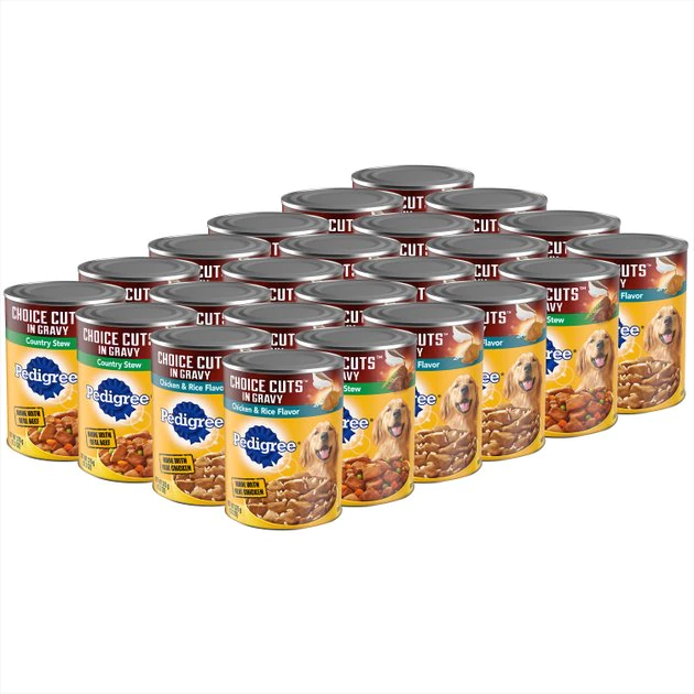 With the Pedigree Choice Cuts In Gravy Country Stew & Chicken & Rice Flavor Canned Wet Dog Food Variety Pack, you’ll be giving your furbaby su-paw tasty, balanced nutrition with every meal. This delicious food features paw-fectly cut pieces with real chicken and beef for irresistible taste. You can use this food as a topper for your best friend’s dry kibble, or feed it as a full meal. With this variety pack of chicken and beef flavors, you can mix up mealtime and keep it exciting for tail-wagging good taste.