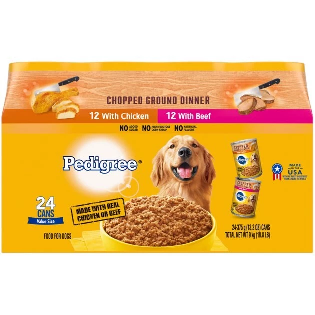 With the Pedigree Chopped Ground Dinner Chicken & Beef Canned Soft Wet Dog Food Variety Pack, you’ll be giving your furbaby su-paw tasty, balanced nutrition with every meal. This delicious food delivers real meat in every bite for tail-wagging good taste. You can use this food as a topper for your best friend’s dry kibble, or feed it as a full meal. Mix up mealtime with this variety pack of flavors to keep your furbaby excited for every meal.
