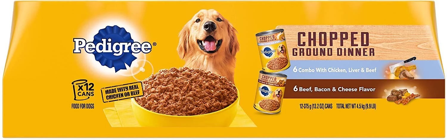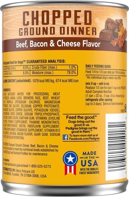 With the Pedigree Chopped Ground Dinner Combo with Chicken, Liver & Beef & Beef, Bacon & Cheese Flavor Variety Pack + Beef, Bacon & Cheese Flavor Canned Wet Dog Food, you’ll be giving your furbaby su-paw tasty, balanced nutrition with every meal. This delicious food delivers real meat in every bite for tail-wagging good taste. You can use this food as a topper for your best friend’s dry kibble, or feed it as a full meal. Mix up mealtime with this variety of flavors to keep your furbaby excited for every meal.