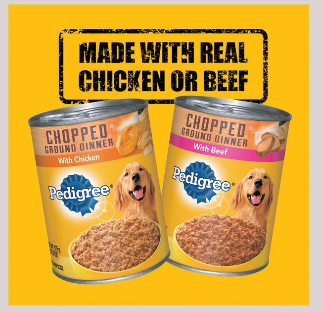 Give your best buddy a hearty choice of meals with the Pedigree Chopped Ground Dinner Variety Pack With Beef & Chicken Canned Dog Food. Made with a ground texture that will make his mouth water, this meaty feast contains optimal levels of oils and minerals to promote healthy skin and a glistening coat. The balanced recipe is also highly digestible, which means your dog can easily absorb all those essential nutrients—so you can feel confident that he’s getting the most out of every meal. But all he’ll really care about is the irresistible flavor, which is sure to get a tail wag at every mealtime.