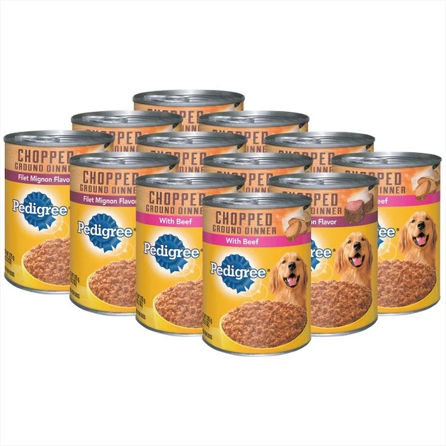 Give your best buddy a hearty choice of meals with the Pedigree Chopped Ground Dinner Variety Pack With Filet Mignon & Beef Canned Dog Food. Made with a ground texture that will make his mouth water, this meaty feast contains optimal levels of oils and minerals to promote healthy skin and a glistening coat. The balanced recipe is also highly digestible, which means your dog can easily absorb all those essential nutrientsโso you can feel confident that heโs getting the most out of every meal. But all heโll really care about is the irresistible flavor, which is sure to get a tail wag at every mealtime.