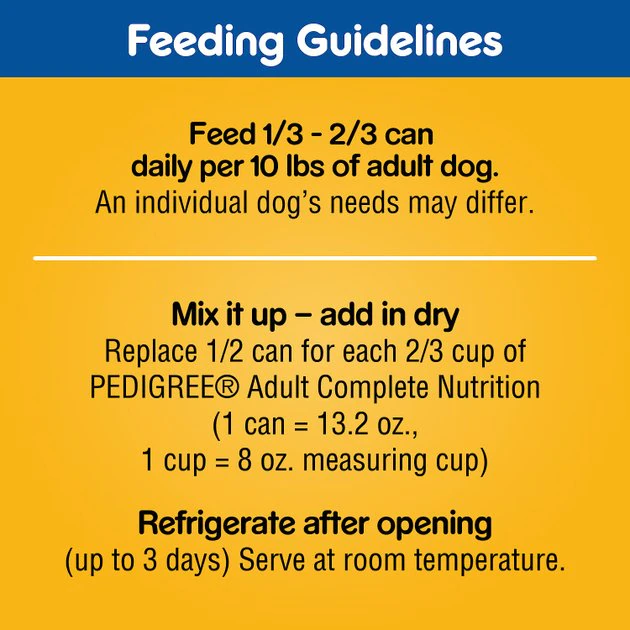 Mix it up โ Replace 1/2 can for each 2/3 cup of dry Pedigree Adult Complete Nutrition