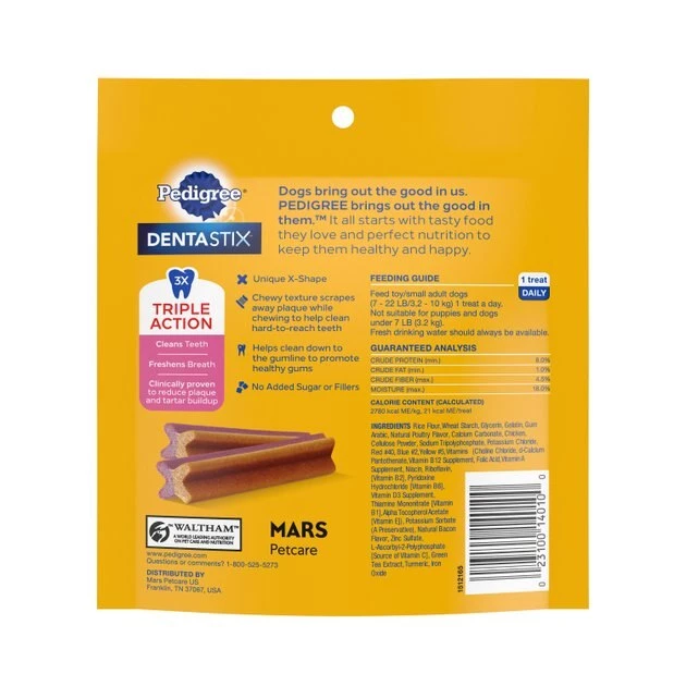 - Pedigree Dentastix treats have a unique shape with ridges to help promote healthy teeth and gums and your companion’s overall oral health.
