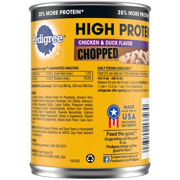 With the Pedigree High Protein Chicken & Duck Flavor Canned Soft Wet Dog Food Variety Pack, you’ll be giving your furbaby su-paw tasty, balanced nutrition with every meal. This protein-rich variety pack features flavors made with real chicken and real duck. You can use this food as a topper for your best friend’s dry kibble, or feed it as a full meal. The irresistibly meaty texture appeals to even the pickiest pups. With chicken and duck flavors, you can mix up mealtime and keep it exciting for tail-wagging good taste.