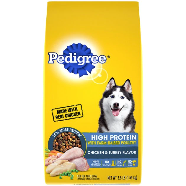 - Made with a high-quality protein sourced from real chicken and contains 25% more protein than Pedigree’s Adult Complete Nutrition.