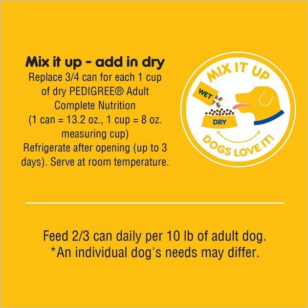 To mix with Pedigree Dry Dog Food replace 3/4 can for each cup of Pedigree Dry Dog Food. 1 cup = 8-oz.
