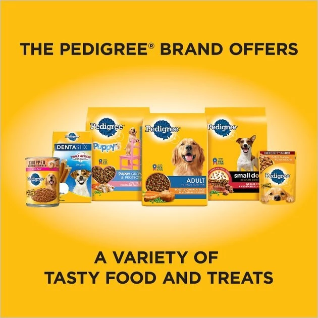 Your furry friend may be a little pup now, but with The Pedigree Puppy Growth & Protection Dry Dog Food Grilled Steak & Vegetable Flavor—he’ll have the right ingredients to become a happy and healthy grown up dog! This complete and balanced meal is packed with nutrients that are similar to those found in mother’s milk, and you won’t find any artificial flavors, added sugar or high fructose corn syrup! The DHA included in this kibble helps develop your furry friend’s brain function, while the high-quality protein helps support his muscle development. Pedigree offers a delicious, meaty taste with a nutritious list of ingredients!