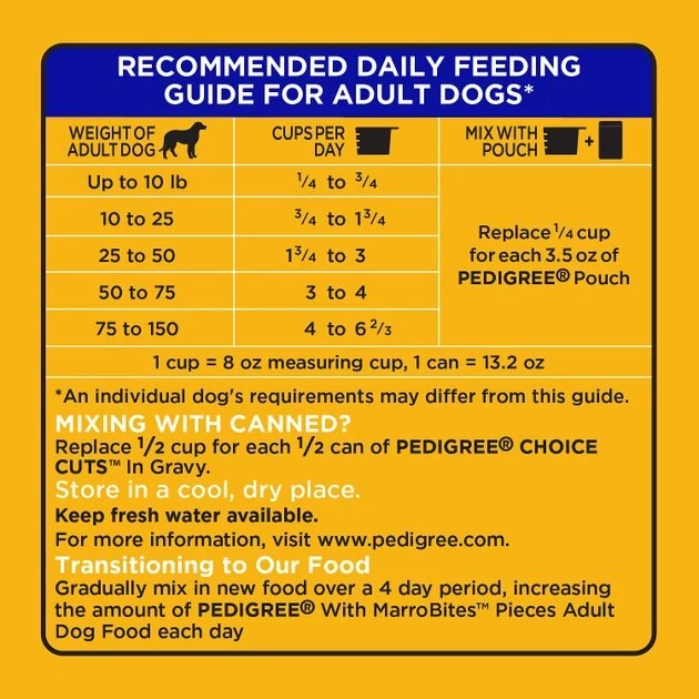 Mixing with canned? Replace 1/2 cup for each 1/2 can of Pedigree.