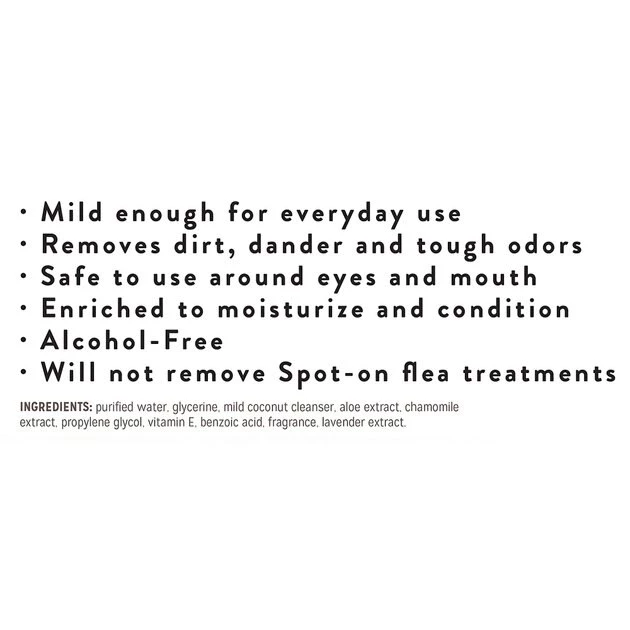 Purified Water, Glycerine, Mild Coconut Cleanser, Aloe Extract, Propylene Glycol, Benzoic Acid, Witch Hazel.