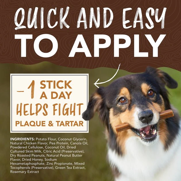 - Give your dog one mouth-watering stick per day to support clean teeth and a healthy mouth—no brushing required!