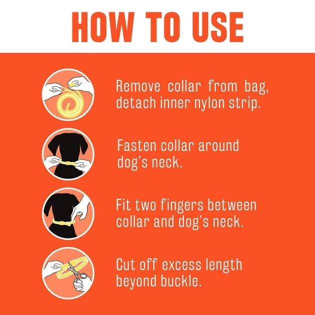 - Replace the collar every 3-4 months for maximum protection or if re-infestation is a risk. Do not use the collar to attach or hold the dog.