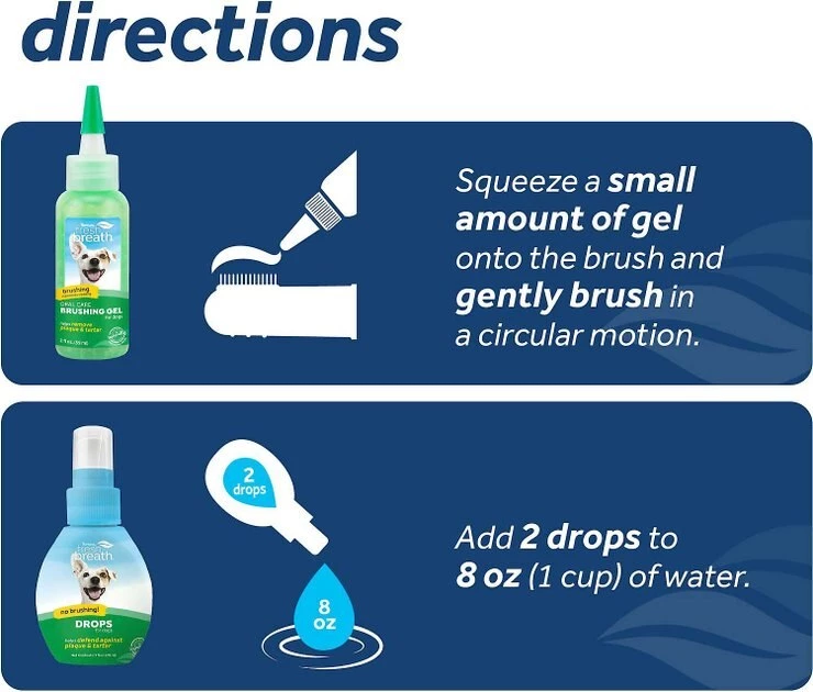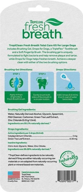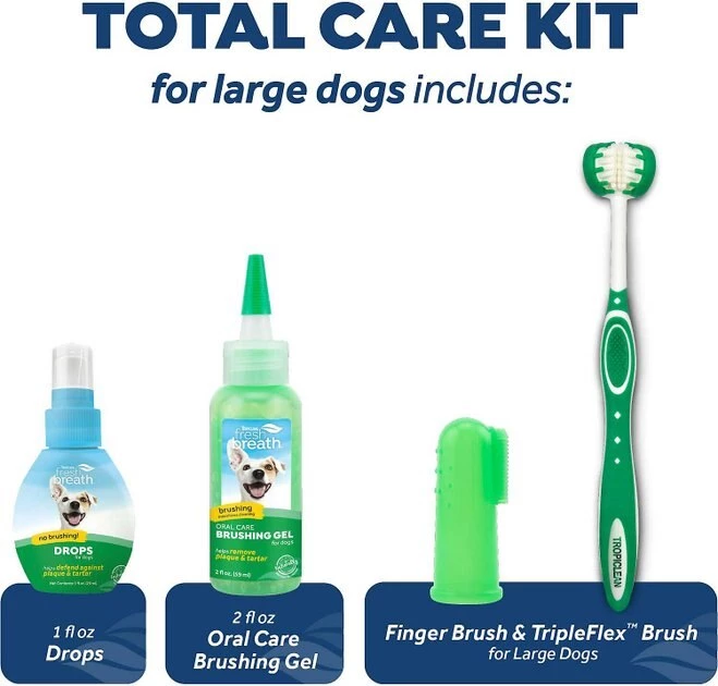 - Includes everything you need to start your pup’s dental routine: TripleFlex Toothbrush, Gentle Finger Brush, 2-ounces Brushing Gel and 1-ounce Drops Water Enhancer.