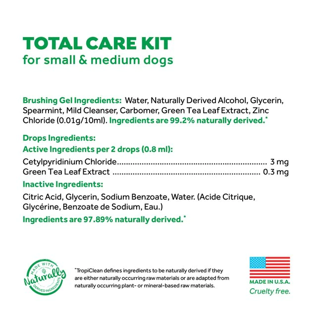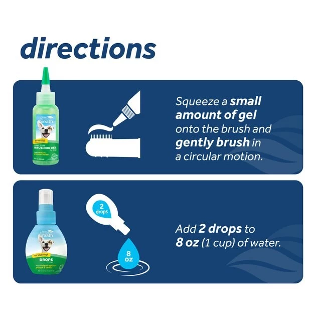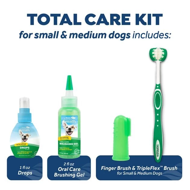 - Includes everything you need to start your pup’s dental routine: TripleFlex Toothbrush, Gentle Finger Brush, 2-ounce Brushing Gel and 1-ounce Drops Water Enhancer.