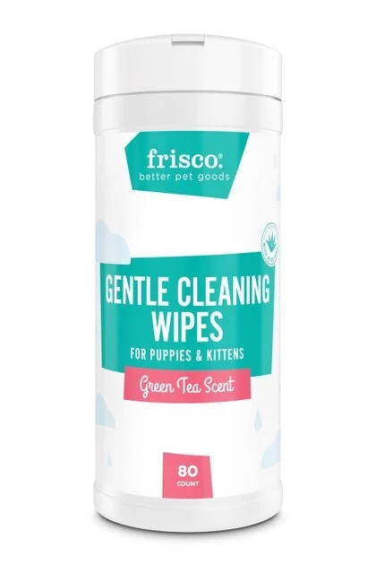 - Frisco Gentle Cleaning Waterless Grooming Wipes for Puppies & Kittens, Green Tea Scent, 80 count—Gentle cleansing wipes for puppies and kittens contain soothing aloe and oat extract.