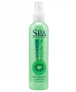 Lavish your best friend in scented comfort with SPA by TropiClean Lavish Comfort Cologne Spray for Pets. This pet cologne will help deodorize your pet and leave him with a long-lasting, succulent kiwi scent. The gentle formula helps condition the coat and also provides protection from harmful UV rays. Safe for use as directed on dogs and cats 12 weeks and older, this easy-to-use cologne spray is a great way to get your pet soft, shiny, fresh-smelling and protected from the sun. Made in the USA with only high-quality, naturally derived ingredients, this salon-grade aromatherapy cologne is a product you can feel good about using on your furry friend!