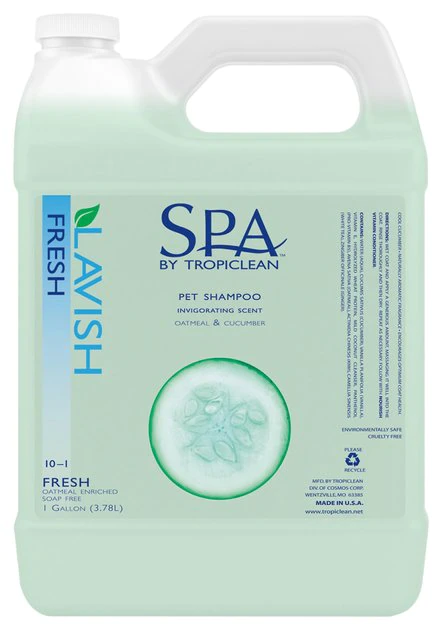 Bathe your furry friend in aromatherapeutic luxury with SPA by TropiClean Lavish Fresh Shampoo for Pets. Made with refreshing cucumber, white tea and fresh vanilla, this salon-grade deep-cleaning shampoo helps purify the skin and coat to boost circulation. It gently washes away dead skin cells, leaving behind a naturally radiant, nourished and healthier coat. For maximum efficacy, use it in combination with SPA by TropiClean Fresh Aromatherapy Spray and Nourish Conditioner (sold separately). Choose this soap-free, oatmeal-enriched shampoo made from naturally derived ingredients for a bath that is deeply cleansing, refreshing and naturally aromatic. It is safe to use on dogs and cats 12 weeks and older and a luxurious choice for any pet who loves to be pampered!