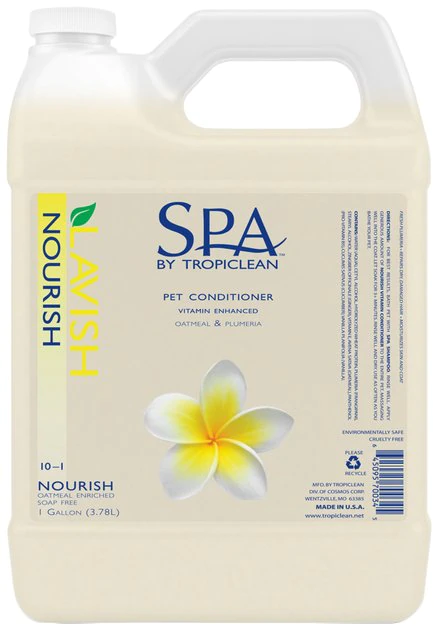 Nourish your furry friend’s coat for lasting vibrancy and beauty with SPA by TropiClean Lavish Nourish Conditioner for Pets. This luxurious conditioner with plant extracts and essential vitamins helps promote a healthy hair sheen and capillary conditioning. The formula’s powerful blend of ginger, botanical moisturizers, and warm vanilla helps repair your pet’s coat, with vitamin E and pro-vitamin B5 to revitalize dry and damaged hair. Anti-static agents calm hair while botanical emollients strengthen the coat, leaving hair incredibly revitalized, full, and manageable. Safe when used as directed on cats and dogs 12 weeks and older, this gentle formula is the perfect way to revive a dull coat. It has a beautiful plumeria scent that will leave your pet smelling fresh and pampered long after bath day, too!