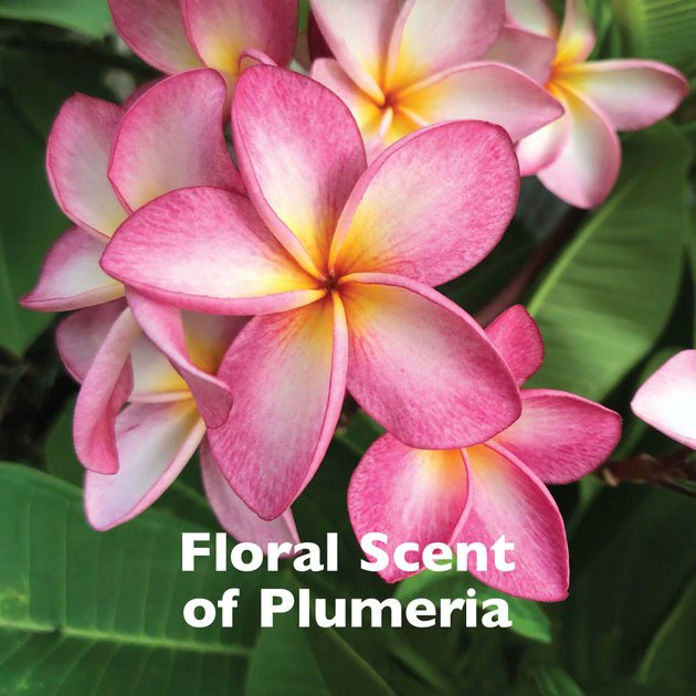 - Helps moisturize and condition the skin and coat and leaves a long-lasting floral plumeria scent.