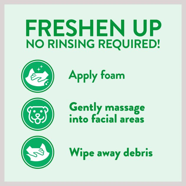 - This no-rinse formula is paw-fect for dog parks, road trips, beach days, camping trips and more. It has a warm vanilla scent that will leave your pet’s face smelling delicious and free from unpleasant smells! Simply scrub brush and go!